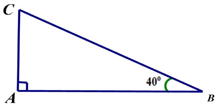 Cho tam giác \({\rm{ABC}}\) vuông tại \({\rm{A}}\) và có \(\angle {\rm{ABC}} = {40^ \circ }\). Tính \(\left(
