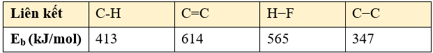Năng lượng của liên kết C-F trong fluoroethane có giá trị là (biết năng lượng liên kết của một số liên kết được cho trong bảng sau):