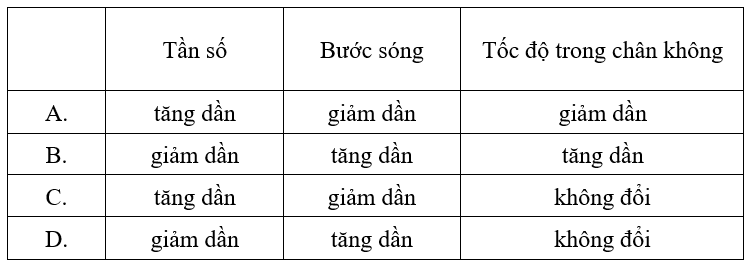 Nội dung nào sau đây tóm tắt đúng đặc điểm của sóng điện từ, tính từ sóng vô tuyến