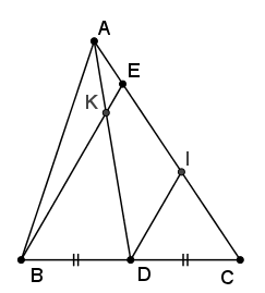 Cho tam giác \({\rm{ABC}}\), đường trung tuyến \({\rm{AD}}\). Gọi \({\rm{K}}\) là điểm thuộc đoạn