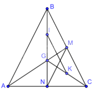 Cho \(\Delta ABC\)cân tại \(B\). Hai trung tuyến AM, BN cắt nhau tại \({\rm{G}}\). Gọi I và \({\rm{K}}\)