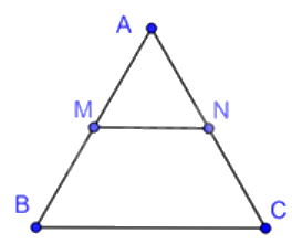 Cho \(\Delta ABC\) đều, cạnh \(3\;{\rm{cm}};{\rm{M}},{\rm{N}}\) lần lượt là trung điểm