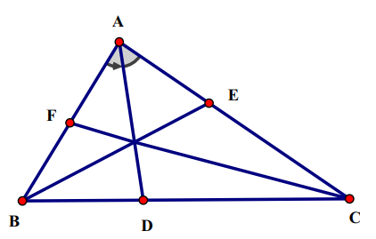 Tam giác \({\rm{ABC}}\), các đường phân giác \({\rm{AD}},{\rm{BE}},{\rm{CF}}\). Chứng minh