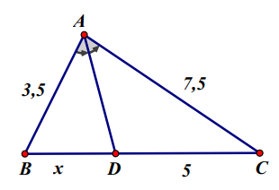 Áp dụng tính chất của đường phân giác: Trong một tam giác, đường phân giác của một góc chia cạnh đối diện thành hai đoạn thẳng tỉ lệ với cạnh kề của hai đoạn ấy.