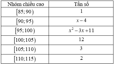 Cho bảng mẫu số liệu ghép nhóm là chiều cao của học sinh lớp 5 tuổi. Tìm x thoả mãn