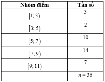 Điểm kiểm tra 15 phút của 36 học sinh lớp 11A được cho bởi bảng tần số ghép nhóm sau:
