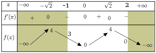 Tính đạo hàm, lập bảng biến thiên.