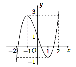 Cho hàm số \(y = f(x)\) có đạo hàm trên \(\mathbb{R}\) và có đồ thị như hình vẽ. Đặt hàm số \(g(x) = f\left( {2{x^3} + x - 1} \right) + m\). Tìm \(m\) để \({\max _{[0;1]}}g(x) = - 10\).