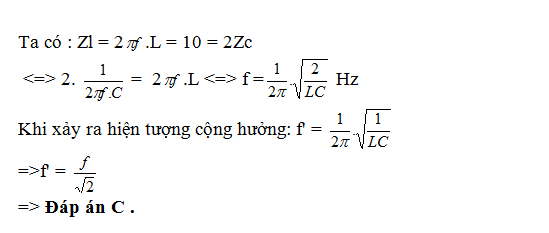 Mạch điện xoay chiều RLC mắc nối tiếp, với R = 10Ω, cảm kháng ZL = 10Ω, dung kháng ZC = 5Ω ứng với tần số f. Khi f thay đổi đến f’ thì trong mạch có hiện tượng cộng hưởng điện. Hỏi tỷ lệ nào sau đây là đúng?
