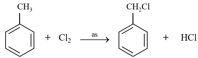 Cho toluene tác dụng với Cl2 (chiếu sáng) theo tỉ lệ mol 1 : 1. Sản phẩm thu được là