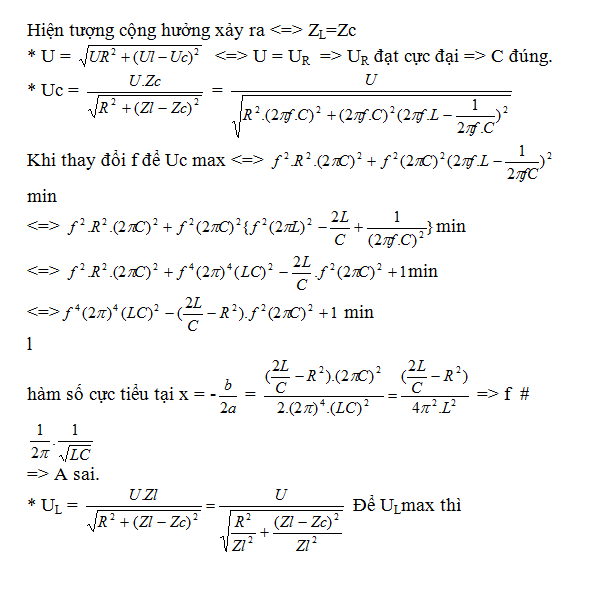 Mạch xoay chiều RLC nối tiếp. Trường hợp nào sau đây có cộng hưởng điện: