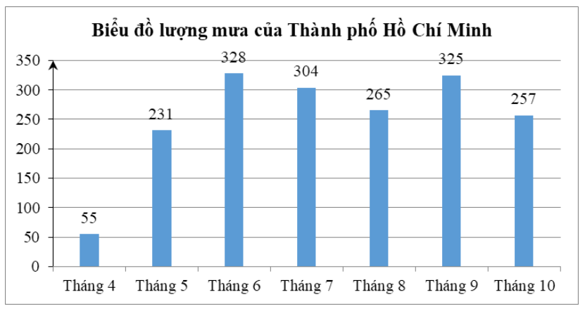 Cho biểu đồ lượng mưa (đơn vị: mm) ở Thành phố Hồ Chí Minh từ tháng 4 đến tháng 10 trong