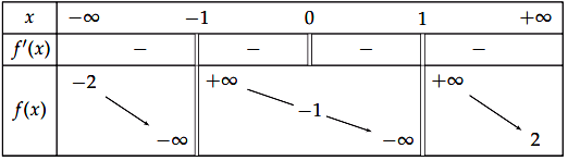 Cho hàm số \(y = f(x)\) xác định trên \(\mathbb{R}\backslash \{ \pm 1\} \), liên tục trên mỗi khoảng xác định và có bảng biến thiên như sau