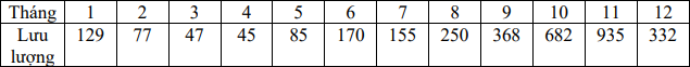 Cho bảng số liệu: Lưu lượng nước trung bình tháng của Sông Đà Rằng tại trạm Củng Sơn