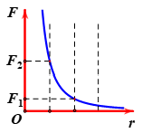Đồ thị biểu diễn độ lớn lực tương tác giữa hai điện tích điểm trong chân không phụ thuộc vào khoảng cách r được cho như hình bên. Tính tỉ số \(\dfrac{{{F_2}}}{{{F_1}}}\) bằng
