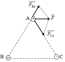Tại ba đỉnh A, B, C của một tam giác đều có cạnh 15cm đặt ba điện tích qA = + 2μC, qB = + 8 μC, qC = - 8 μC. Tìm véctơ lực tác dụng lên qA