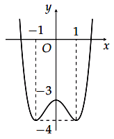 Xác định các hệ số \(a,b,c\) để hàm số \(y = a{x^4} + b{x^2} + c\) có đồ thị như hình vẽ bên.