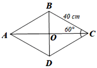Sử dụng tính chất ABCD là hình thoi nên đường chéo AC và BD vuông góc với nhau tại trung điểm \({\rm{O}}\) của mỗi đường.