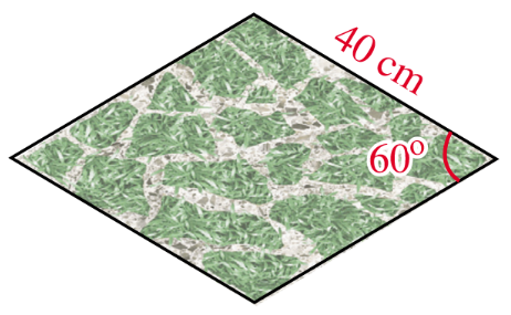 Một viên gạch trang trí có dạng hình thoi với độ dài cạnh là \(40\;{\rm{cm}}\) và số đo một