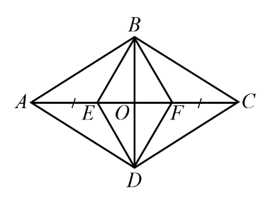 Cho hình thoi ABCD có hai đường chéo AC và BD cắt nhau tại \(O\). Lấy các điểm E, F thuộc đường chéo AC sao cho \(AE = CF\). Chứng minh tứ giác BEDF là hình thoi.