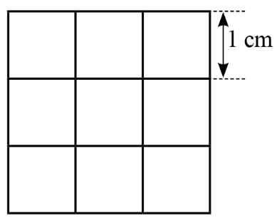 Cho hình dưới đây là một hình vuông lớn được chia thành 9 hình vuông nhỏ có độ dài cạnh là \(1\;{\rm{cm}}\). Tính độ dài đường chéo của hình vuông lớn (làm tròn kết quả đến hàng phần mười của centimét).