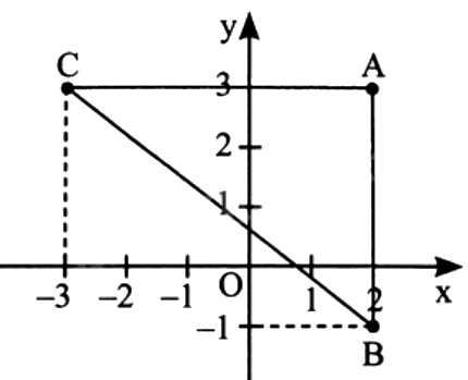 Hệ trục tọa độ cho các điểm \({\rm{A}}(2;3),{\rm{B}}(2; - 1),{\rm{C}}( - 3;3)\). Tính diện tích của tam giác \({\rm{ABC}}\).
