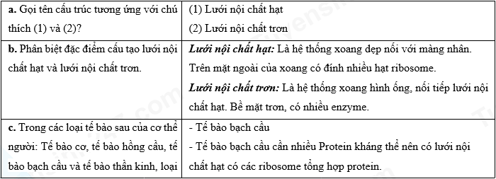 c) Trong các loại tế bào sau của cơ thể người: Tế bào cơ, tế bào hồng cầu, tế bào bạch cầu và tế bào thần kinh, loại tế bào nào có lưới nội chất hạt phát triển? Giải thích?