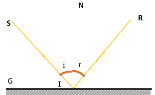 Chiếu một tia sáng đến một gương phẳng. Biết tia phản xạ và tia tới hợp với nhau góc \({50^0}\). Khi đó góc phản xạ có giá trị là