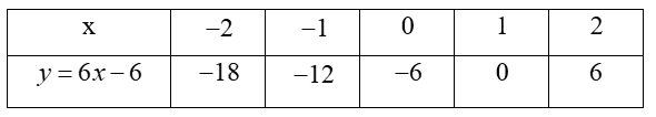 Lập bảng giá trị của hàm số bậc nhất \(y = 6x - 6\) với x lần lượt bằng \( - 2; - 1;0;1;2\)