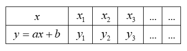 Để lập bảng giá trị của hàm số bậc nhất \(y = ax + b\) ta lần lượt cho \(x\) nhận các giá trị \({x_1},{x_2},{x_3}, \ldots \) (\({x_1},{x_2},{x_3}\) tăng dần) và tính các giá trị tương ứng của \(y\) rồi ghi vào bảng có dạng sau: