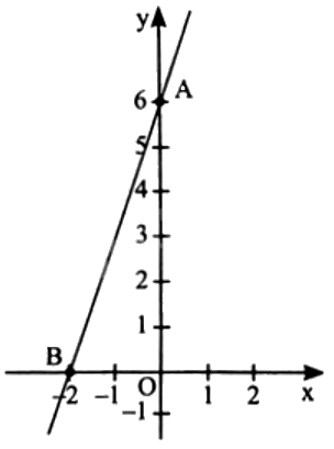 b) Gọi \({\rm{A}},{\rm{B}}\) lần lượt là giao điểm của đồ thị hàm số trên với trục \({\rm{Ox}},{\rm{Oy}}\). Xác định tọa độ của \({\rm{A}},{\rm{B}}\) và tính diện tích của tam giác \({\rm{AOB}}\). (Đơn vị đo trên các trục tọa độ là cm.)