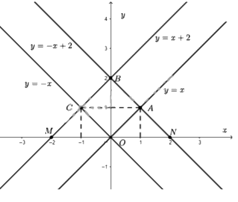 Bốn đồ thị \(y = x;\quad y = x + 2;\quad y = - x;\quad y = - x + 2.{\rm{ }}\)cắt nhau tại các điểm