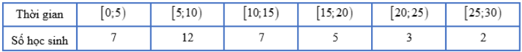 Cho mẫu số liệu ghép nhóm về thời gian (phút) đi từ nhà đến trường của các học sinh trong