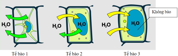 a) Tế bào thịt lá khi ngâm trong các dung dịch có nồng độ khác nhau khác nhau được mô tả như hình dưới
