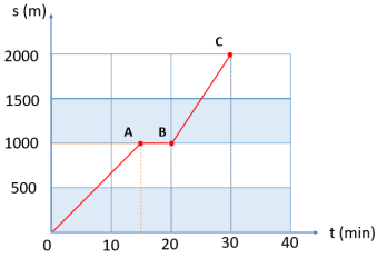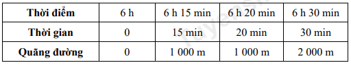 Lúc 6h sáng, bạn A đi bộ từ nhà ra công viên để tập thể dục cùng các bạn. Trong 15 phút đầu A đi thong thả được 1000m thì gặp B. A đứng lại nói chuyện với B trong 5 phút. Chợt A nhớ ra là các bạn hẹn mình bắt đầu tập thể dục ở công viên vào lúc 6h30 phút nên vội vã đi nốt 1000m còn lại và đến công viên vào lúc 6h30 phút.