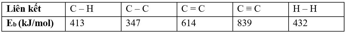 Cho giá trị trung bình của các năng lượng ở điều kiện chuẩn: