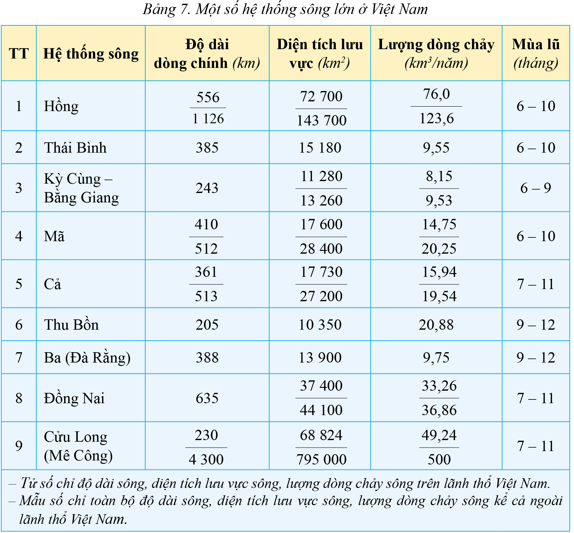 Hệ thống sông có độ dài dòng chính lớn nhất trên lãnh thổ nước ta là