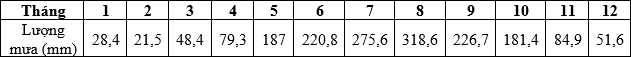 Cho bảng số liệu:LƯỢNG MƯA TRUNG BÌNH CÁC THÁNG CỦA TRẠM KHÍ TƯỢNG HÀ ĐÔNG (TP HÀ NỘI)a) Em