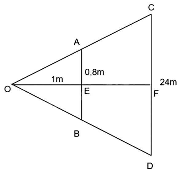 Chứng minh \(\Delta {\rm{OAB\backsim}}\Delta {\rm{OCD}}\) suy ra các tỉ số đồng dạng và khoảng cách từ căn hộ nhà Lan đến tòa nhà đối diện là \(29\;{\rm{m}}\)