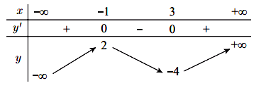 Cho hàm số y = f(x) xác định và liên tục trên khoảng \(\left( { - \infty ; + \infty } \right)\), có bảng biến thiên như hình vẽ: