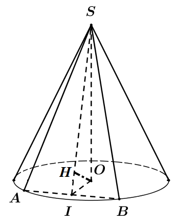 + Gọi I là trung điểm của AB, trong (SOI) kẻ \(OH \bot SI\). Chứng minh SH là hình chiếu vuông góc của SO lên (SAB) và xác định góc \(\varphi \).