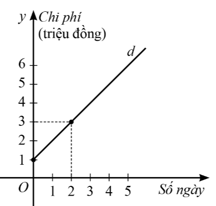 Để sử dụng thẻ dịch vụ nghì dưỡng 5 sao ở bãi biển Nha Trang của một công ty du lịch, khách hàng phải trả phí thuê theo ngày và một khoản phí ban dầu gọi là phí duy trì thẻ. Một phần đường thẳng d ở hình sau biểu thị tổng chi phí (đơn vị: triệu đồng) mà khách hàng đó phài trả để sử dụng dịch vụ của công ty du lịch theo thời gian nghỉ