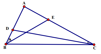 Cho tam giác \({\rm{ABC}}\). Lấy \({\rm{D}}\) thuộc \({\rm{AB}},{\rm{E}}\) thuộc \({\rm{AC}}\) sao cho góc