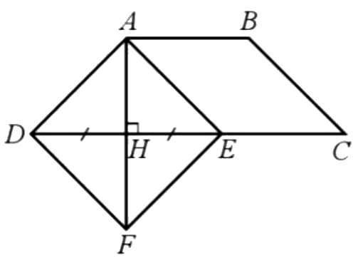 Cho hình thang cân ABCD có \(AB\parallel CD,\angle D = {45^\circ }\). Kẻ AH vuông góc với CD tại \(H\). Lấy điểm \(E\) thuộc cạnh CD sao cho \(HE = DH\).