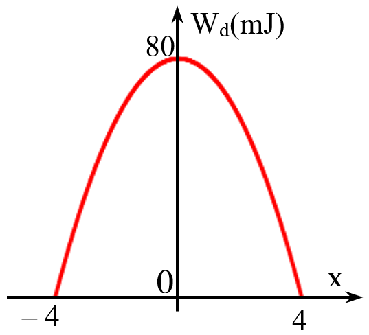 Đồ thị hình bên mô tả sự thay đổi động năng theo li độ của của quả cầu có khối