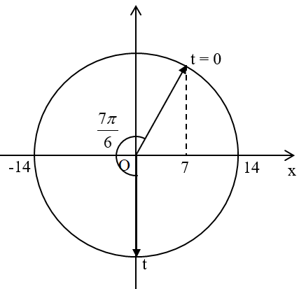 Một chất điểm dao động với phương trình \(x = 14\cos \left( {4\pi t + \dfrac{\pi }{3}} \right)\,\,cm\)
