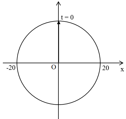 Một con lắc lò xo có khối lượng m = 50g dao động điều hòa trên trục x với chu kì T = 0,2 s và biên độ A = 0,2 m. Chọn gốc tọa độ O tại vị trí cân bằng, chọn gốc thời gian là lúc con lắc qua vị trí cân bằng theo chiều âm.