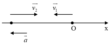 Mai bắt đầu rời cửa hàng tạp hoá bằng xe đạp điện với vận tốc coi như không đổi là 5m/s. Cùng lúc đó một xe ô tô đi qua điểm cách cửa hàng tạp hoá 150m với vận tốc 15m/s, chuyển động chậm dần đều về phía cửa hàng theo hướng ngược chiều với Mai với gia tốc \(1\,\,m/{s^2}\). Coi rằng cả Mai và ô tô đều đi theo quỹ đạo là đường thẳng.