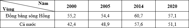 Cho bảng số liệu sau:Năng suất lúa của Đồng bằng sông Hồng và cả nước (tạ/ha)(Nguồn:
