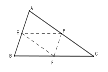 Cho tam giác ABC có chu vi \(32\;{\rm{cm}}\). Gọi E, F, P là trung điểm của các cạnh AB, BC, CA. Chu vi của tam giác EFP là: